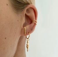 Both silver or gold plated version comes with a small (12mm) hoop earring: in sterling silver for the 'silver version' and plated in 14k gold for the 'gold version'. The earring is a single style earring.